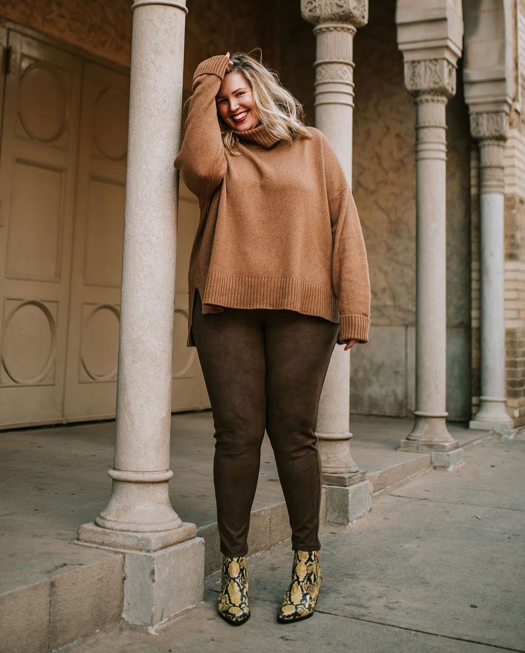 Полным женщинам нужно всегда оценивать объем изделия и его форму. Откажитесь от моделей, которые имеют крупную вязку, особенно в светлых тонах с визуально выраженными полосками. Наиболее подойдут нейтральные и лаконичные вариации.
